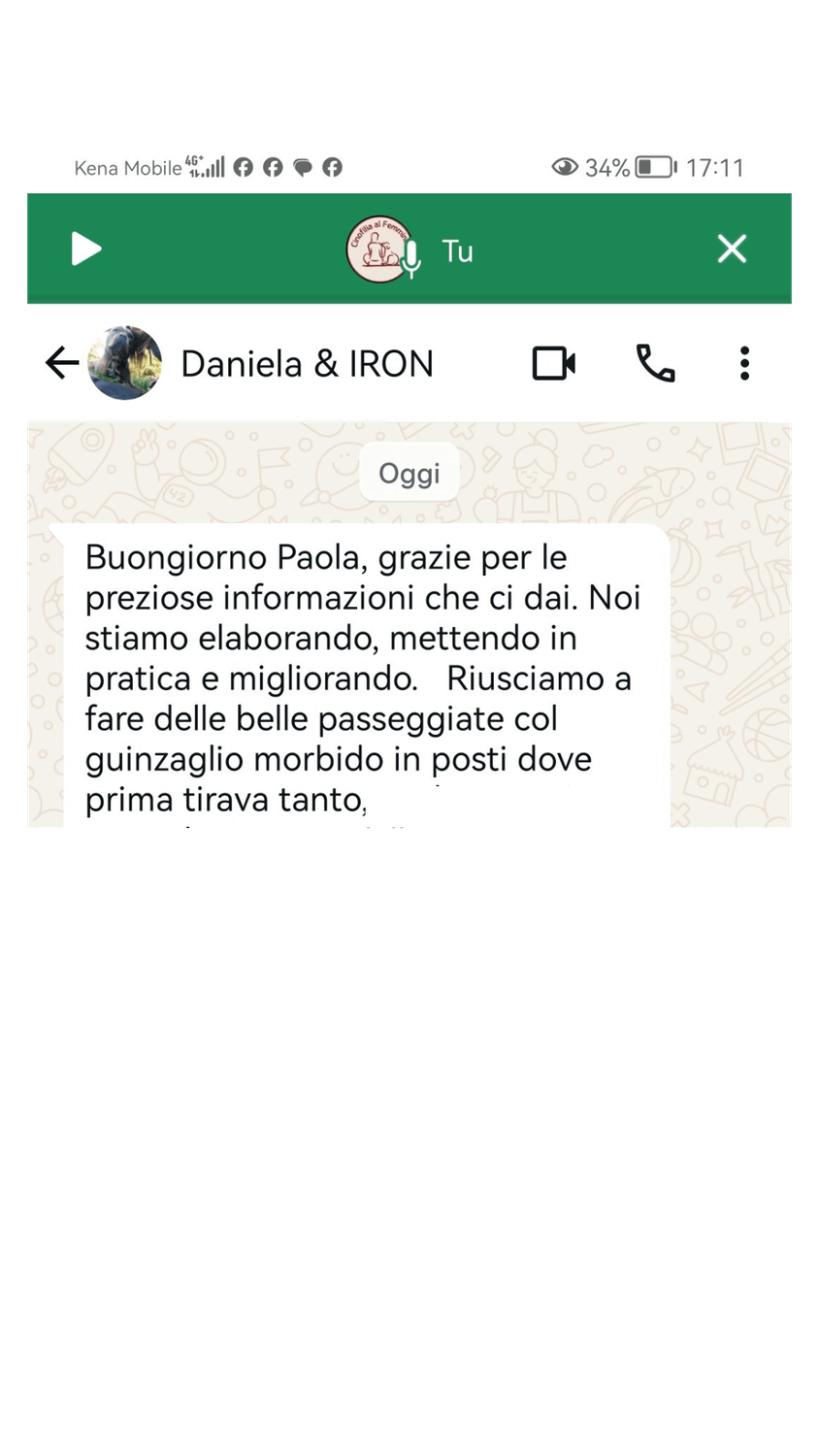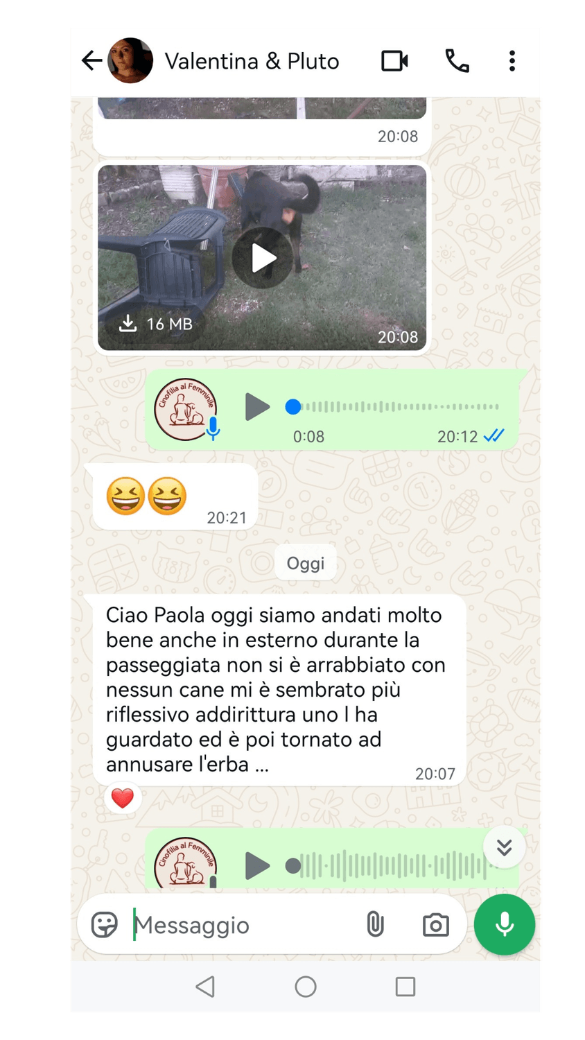 Contattami su Whatapp e raccontami di te e del tuo cane senza impegno. Qualora comunque consideraste che non possiamo aiutarvi, ve lo diciamo.